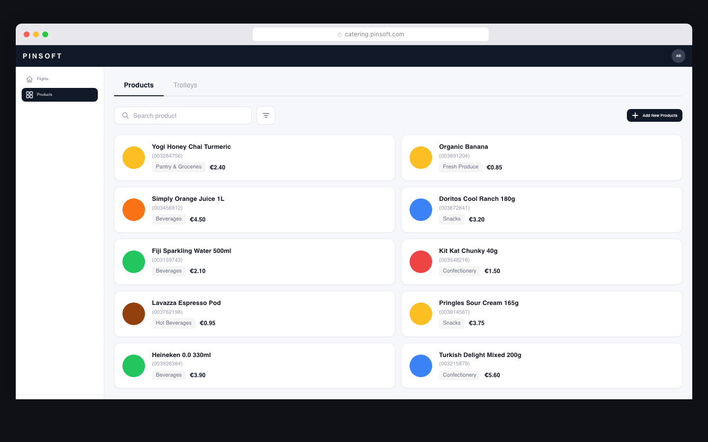 Improves flight-leg preparation by organizing products into trolley-based structures before service begins.