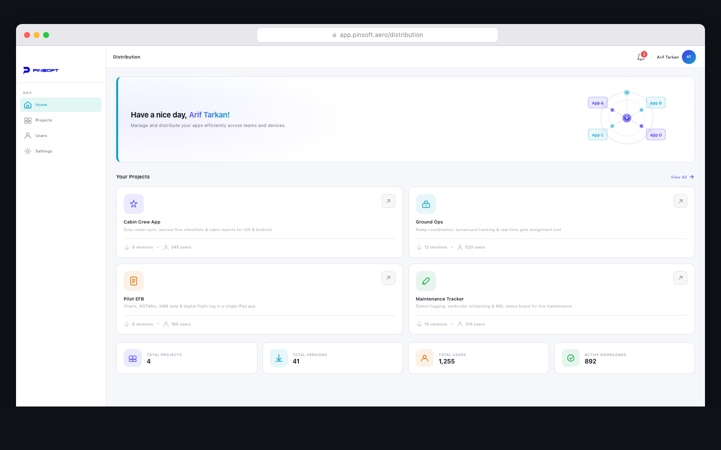 Keeps active and legacy app projects visible in one place for better distribution planning and follow-up.